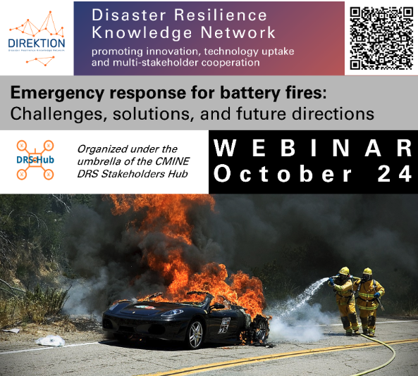 Únase al socio de CTIF DIREKTION en este seminario web interactivo de DIREKTION, organizado con el apoyo del CMINE DRS Stakeholder Hub, para explorar cómo los equipos de respuesta, los investigadores y los innovadores están abordando los desafíos únicos de los incidentes de incendios de baterías, desde los humos tóxicos y el escape térmico hasta las estrategias de extinción y la seguridad operativa.