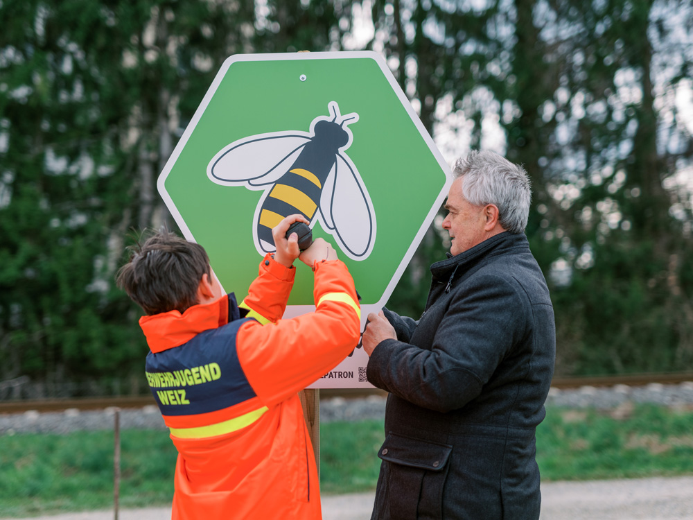 El proyecto se puso en marcha en Weiz, donde se plantaron 250 m² de pasto para abejas junto a las 7 hectáreas previstas. Los bomberos locales, la bióloga de BeeWild Kathrin Grobbauer, el alcalde de Weiz Ingo Reisinger y los bomberos colaboraron en el esfuerzo.