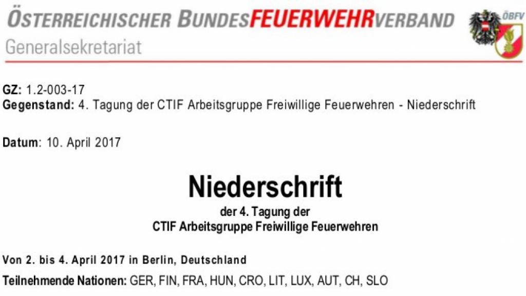 La 4 ème réunion du groupe de travail du CTIF "services d'incendie volontaires" s'est tenue le 3 avril à BERLIN, en Allemagne.