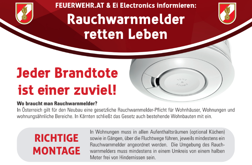 密集的消防队网络是宣传的倍增器。本邮件附有一张海报,概述了有关烟雾探测器的最重要内容。您也可以在以下网址制作带有自己标识的海报 www.feuerwehr.at/plakate向您的读者宣传使用烟雾探测器的要点。